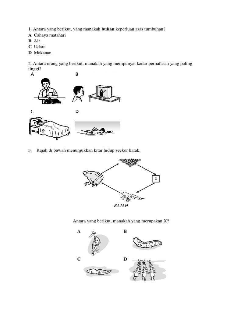 Jawab semua soalan Every question is followed by four answers A B C and D. 0 0 found this document not useful Mark this document as. Ujian Bulan Mac Sains Tahun 4 2018 adalah sebahagian kertas soalan yang telah berjaya dikumpulkan dan dikemaskini oleh GuruBesarmy.